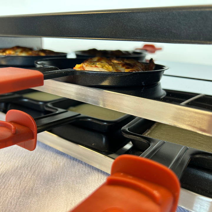 | Components included | 8 poêlons à raclette, 6 poêlons de pizza |