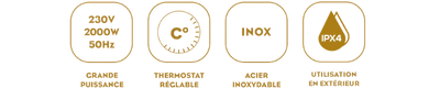 • Grille Inox Réglable : Ajustez la hauteur de la grille pour optimiser la cuisson selon l'intensité de la chaleur.