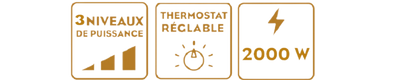 3 niveaux de puissance : 750 W / 1250 W / 2000 W.
