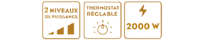 Puissance 2000 W avec 2 niveaux (1000W / 2000W).
