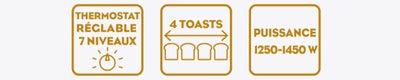 - Toast the way you want it: choose the function (Heat or Defrost) and the desired level of browning (7 levels), and that's it! Once the toasting time has elapsed, the bread is automatically ejected and lifted to the top.