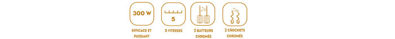 - Accessoires inclus : 2 batteurs + 2 crochets chromés