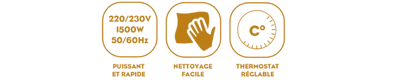 - Répartition homogène de la chaleur, sur toute la surface des 2 plaques vous garantissant une cuisson et un brunissage parfaits des 2 côtés de la gaufre.