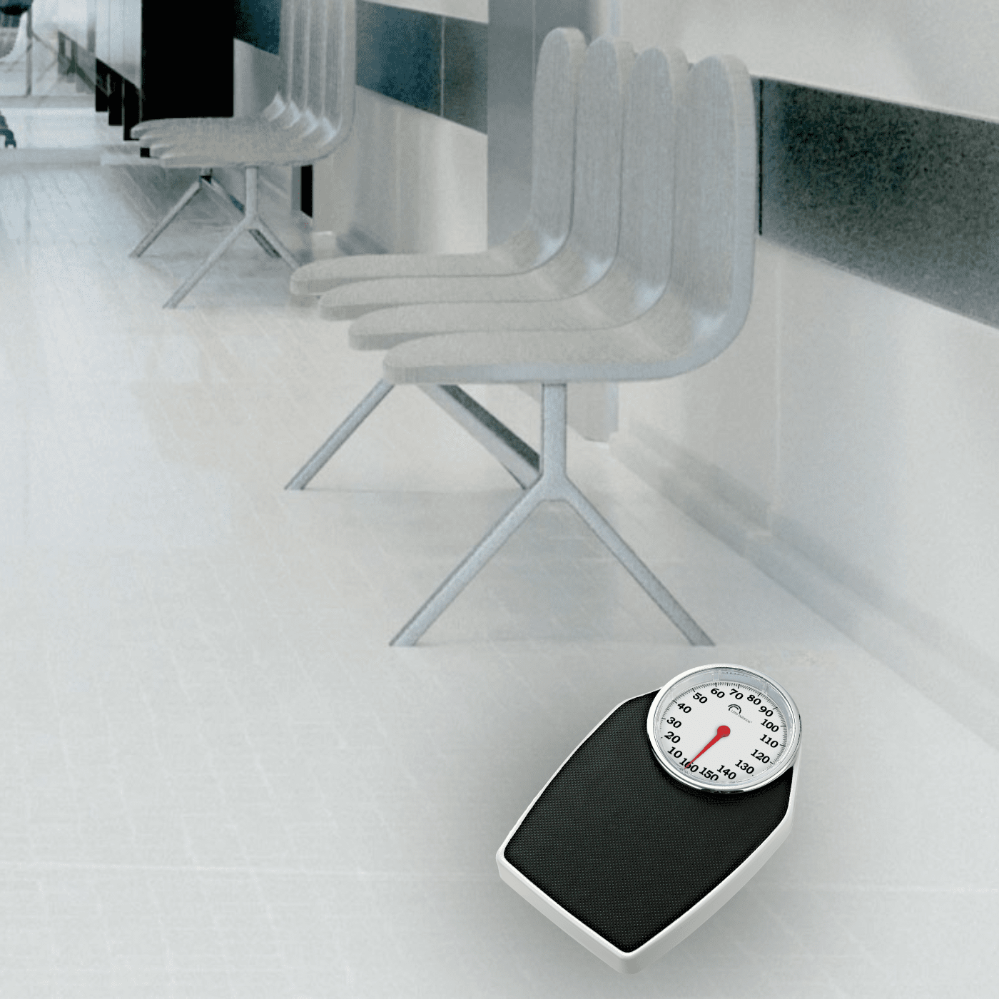 - XXL chrome screen: Diameter 180 mm, for excellent readability of your weight - White digits on black background - Highly visible rotating red pointer for weight indication