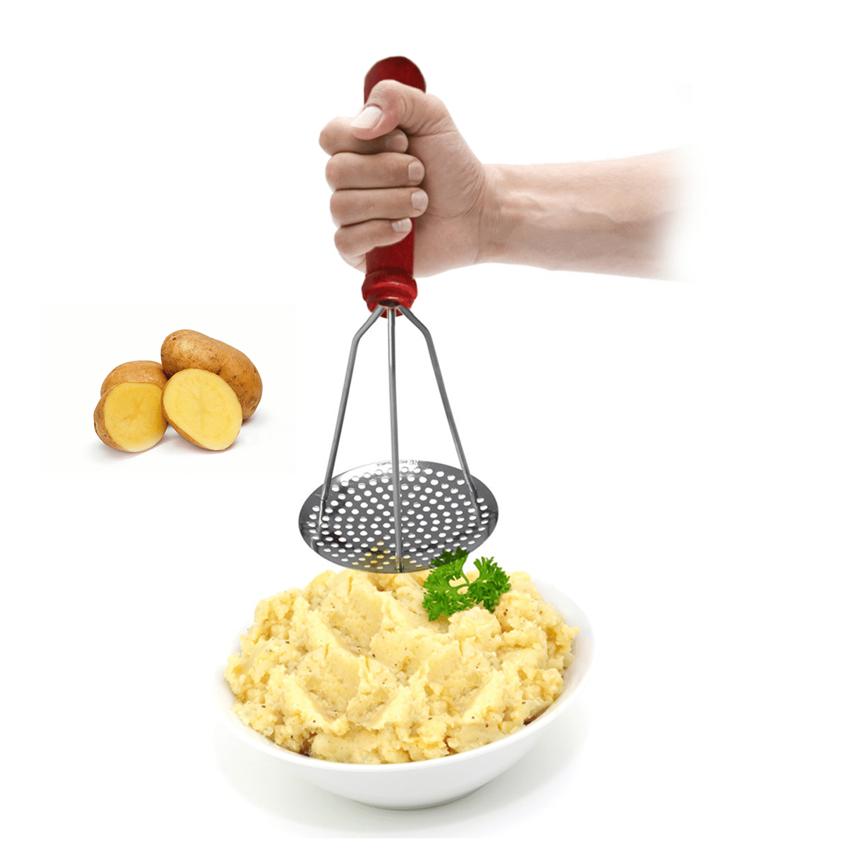 - Potato masher with solid stained beech handle