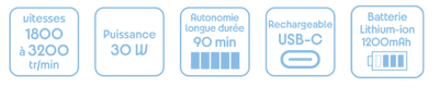 - Puissance : 1200 mAh