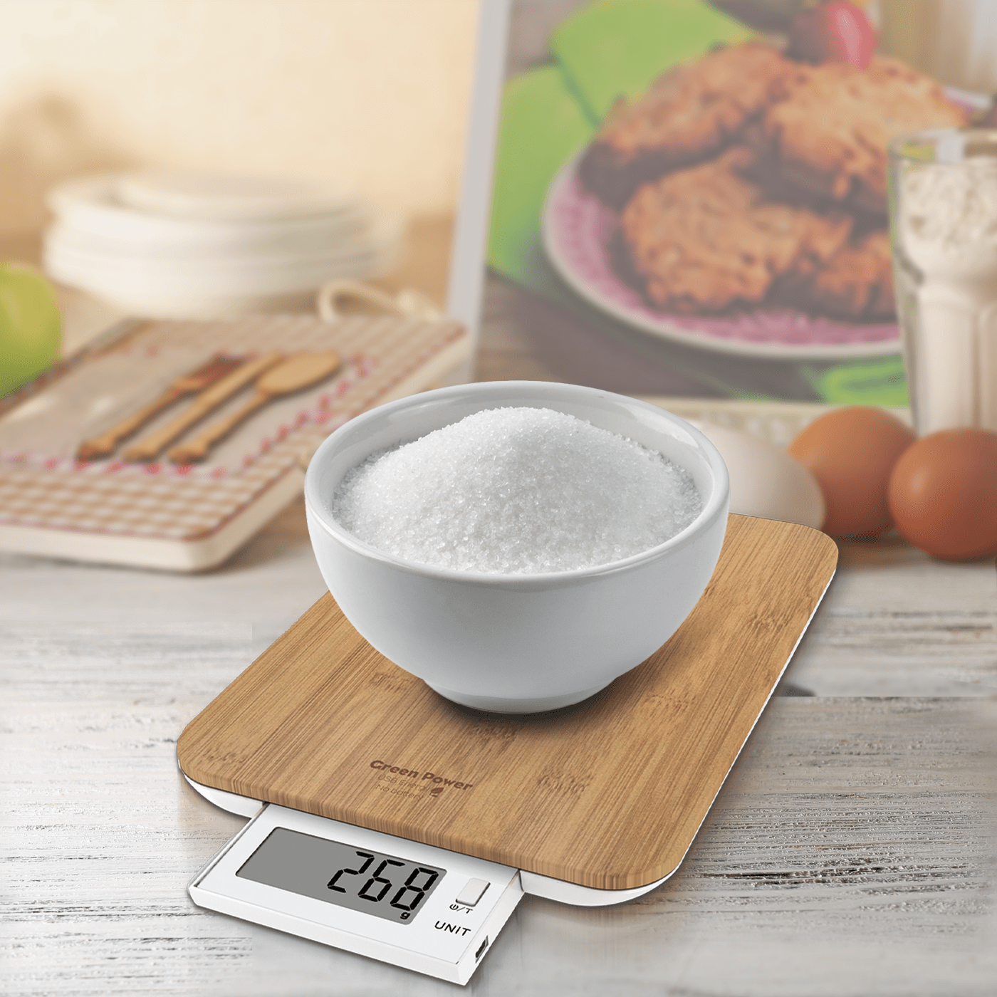 - Plateau de pesée : 240 x 180 mm - Bambou véritable