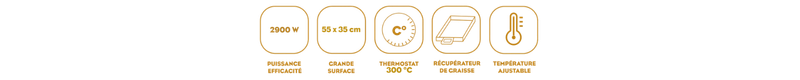 - Plaque de cuisson : 550 x 350 mm - Acier 8 mm - Anti adhésif