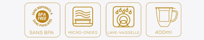 - Le couvercle et le verre sont en borosilicate ce qui permet d’être très résistant !