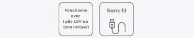 Wireless operation: runs on 1 AA battery (1.5V - not included)