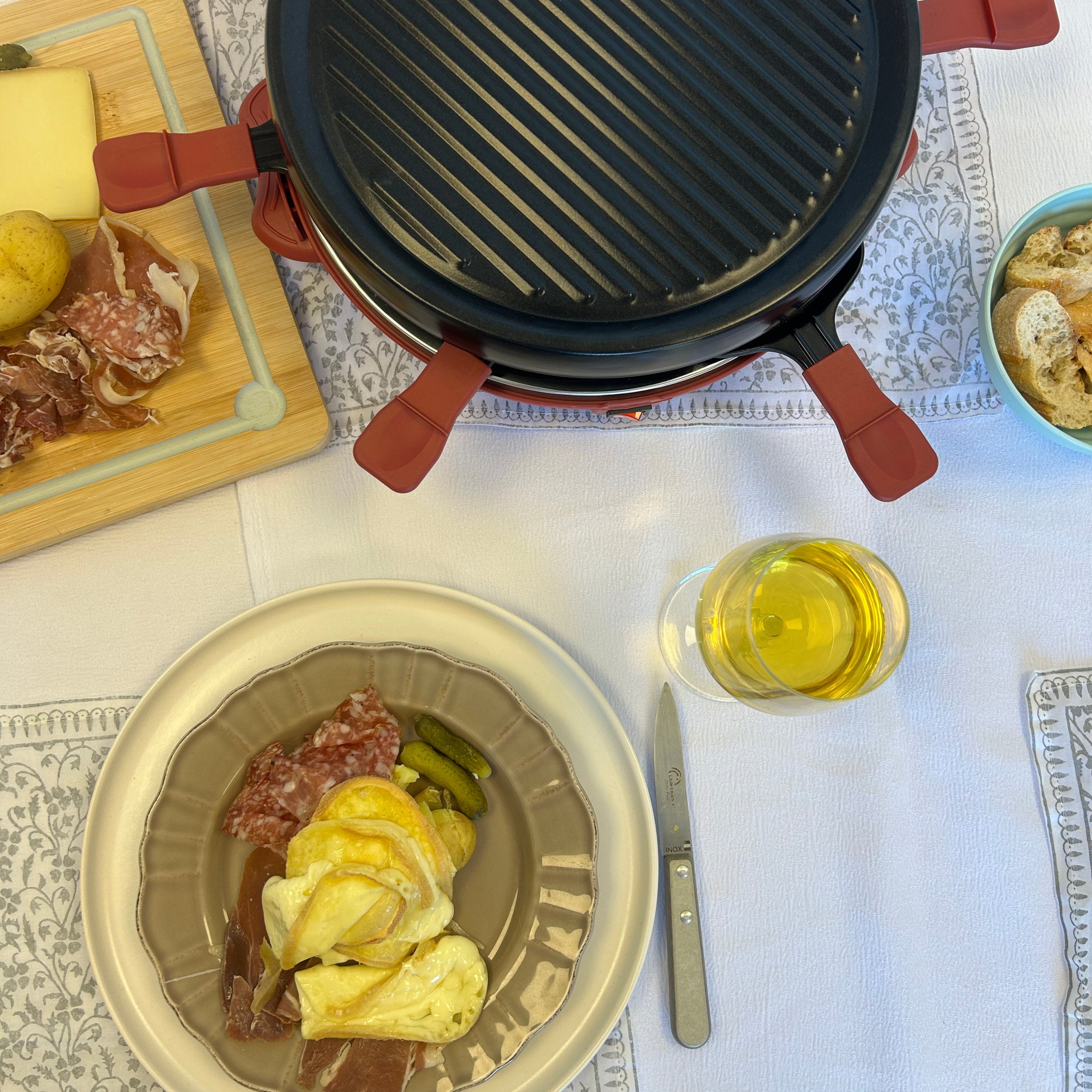 Raclette – Grill Cheese & Fun : Idéal pour 6 personnes, pour partager un moment convivial autour de viandes, légumes et fromages fondants, directement à table.