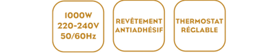 - Appareil puissant et rapide : Préchauffage en moins de 5 minutes / Puissance 1000 W - 1 voyant thermostatique de "prêt à l'emploi" - Thermostat réglable.