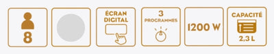 - Capacité 2,3L idéale jusqu’à 8 convives