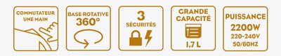 - Ébullition rapide grâce à sa puissance de 2200 W
