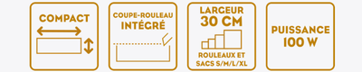 Compatible avec sacs et rouleaux jusqu’à 30 cm : idéal pour toutes vos conservations.