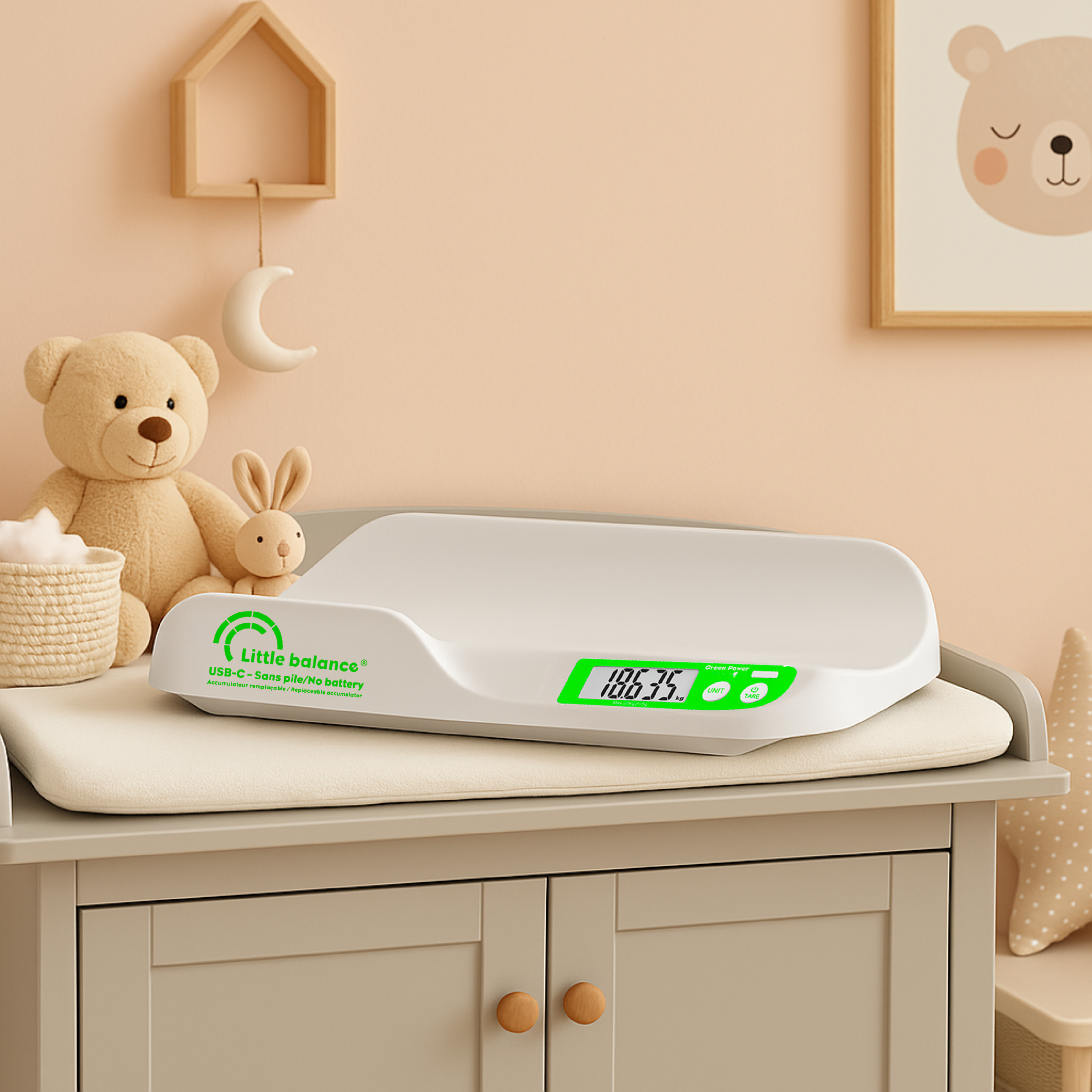 - Fonction anti-gigotement : Permet une pesée précise, même lorsque bébé bouge