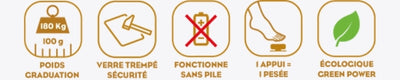 - Fonctionne sans pile, grâce à son bouton Little balance : Appuyez et pesez-vous, c’est tout !