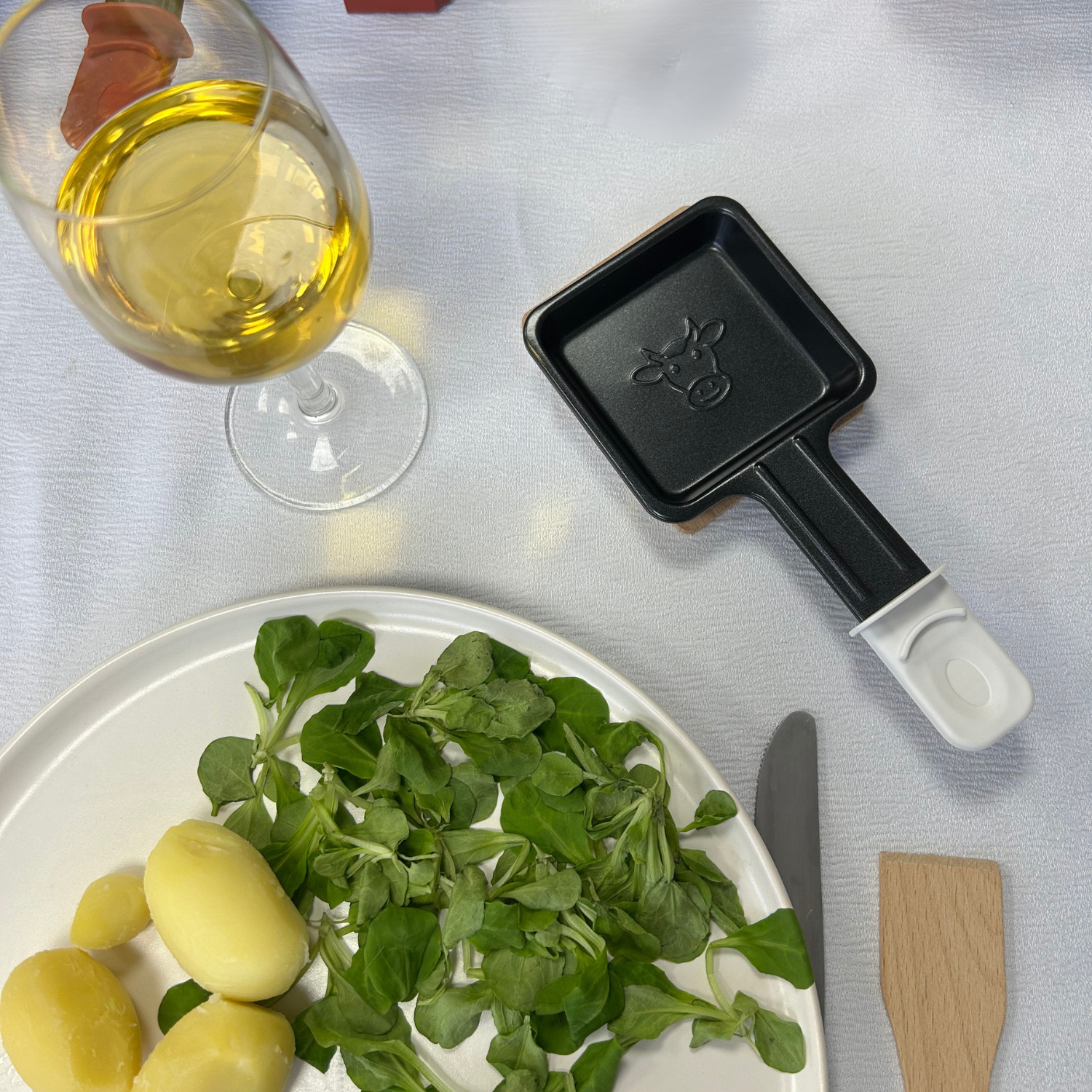 Complétez vos repas conviviaux avec ce pack de 2 poêlons carrés blancs universels compatibles avec tous les appareils à raclette de la gamme Les Meuuuh !