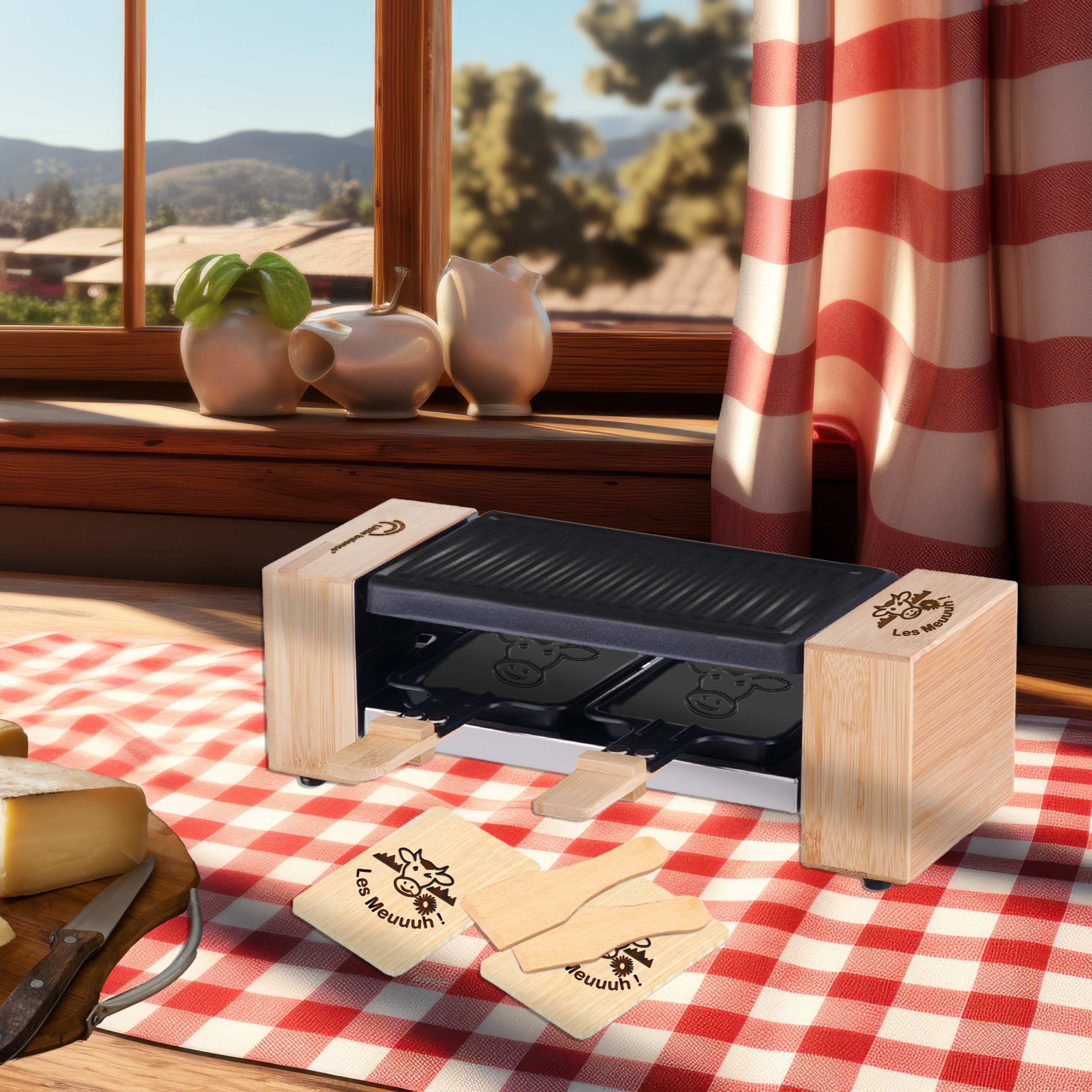 - Ultra compact et léger (moins de 1kg), cet appareil à raclette se range facilement dans les placards et s'emporte pour les vacances.