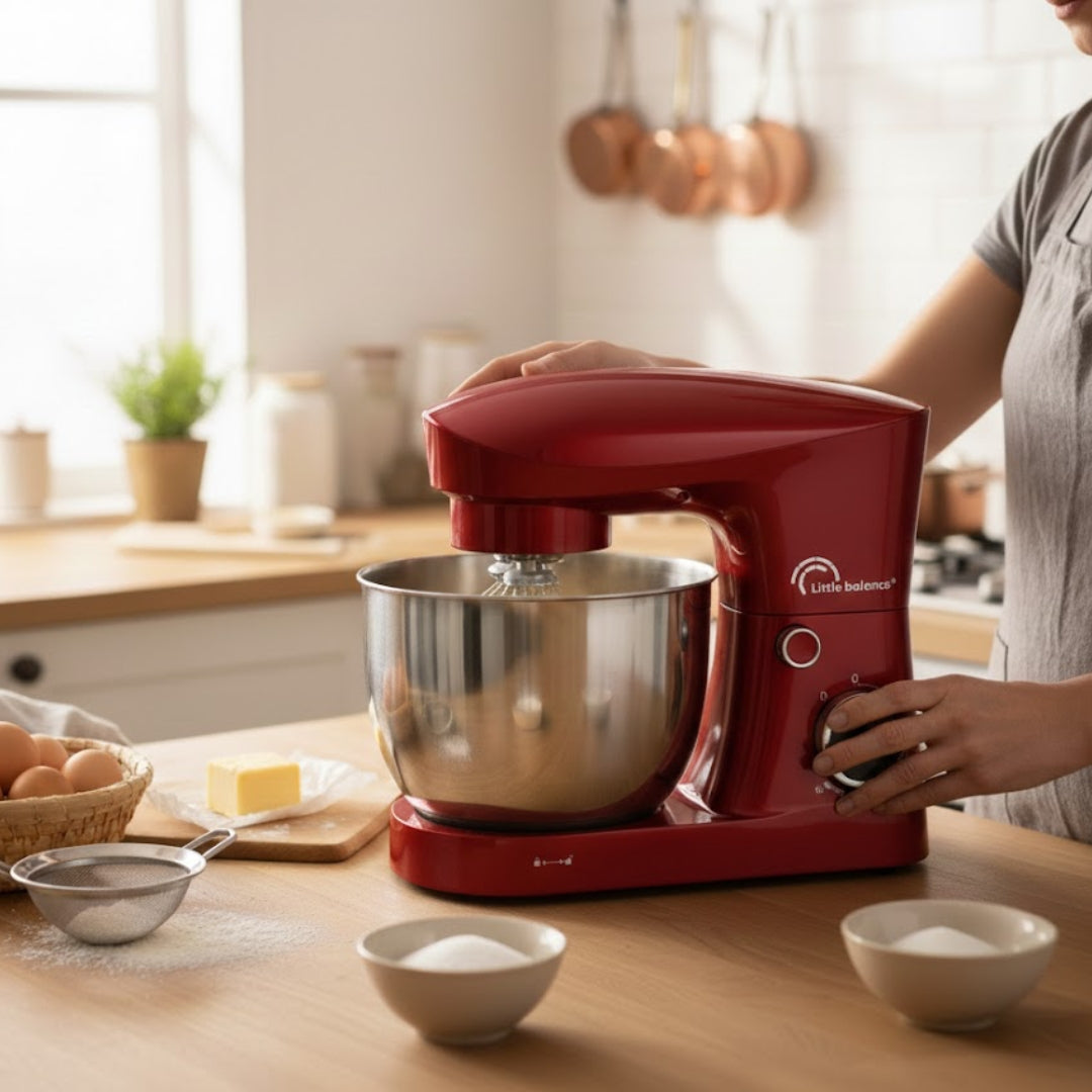 Accessoires pâtissiers inclus : un crochet de pétrissage en céramique pour les pâtes à pain, un fouet plat pour les pâtes à gâteaux et un fouet pour des blancs en neige aériens.
