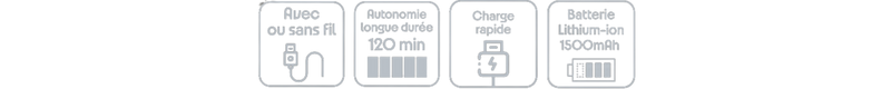 - Fourni avec : Pochette de rangement - Huile de lubrification - Capuchon de protection de la tête de coupe - Câble de chargement USB-C