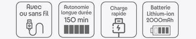 - Autonomie longue durée : 150 minutes