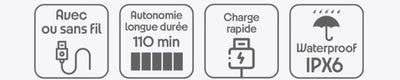 - Batterie lithium-ion haute qualité garantissant une autonomie longue durée de 150 minutes pour une charge rapide de seulement 90 minutes. Afin de l'utiliser quand vous le souhaitez !