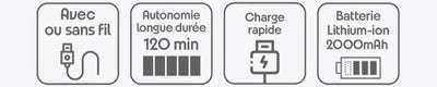 - Autonomie longue durée de 120 minutes pour une utilisation à votre convenance.